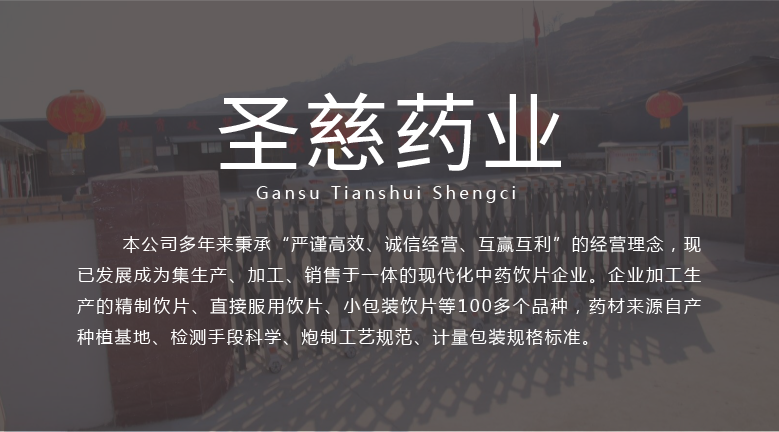 甘肅天水圣慈藥業(yè)有限公司成立于2016年11月8日,注冊資本500萬元,位于甘肅省天水市張川回族自治縣張川鎮(zhèn)中城南路,本公司多年秉承“嚴(yán)謹(jǐn)高效、誠信經(jīng)營、互贏互利”的經(jīng)營理念,現(xiàn)已發(fā)展成為集生產(chǎn)、加工、銷售于一體的現(xiàn)代化中藥飲片企業(yè)。企業(yè)加工生產(chǎn)的精制飲片、直接服用飲片、小包裝飲片等100多個(gè)品種,藥材來源自產(chǎn)種植基地、檢測手段科學(xué)、炮制工藝規(guī)范、計(jì)量包裝規(guī)格標(biāo)準(zhǔn)。